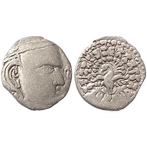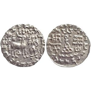 Gupta Empire Skanda Gupta (556 - 575 AD) Silver Drachm Peacock Type