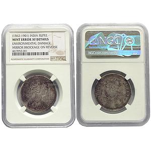 Victoria Queen Error Brockage complete lakhi impression Silver Rupee Rare