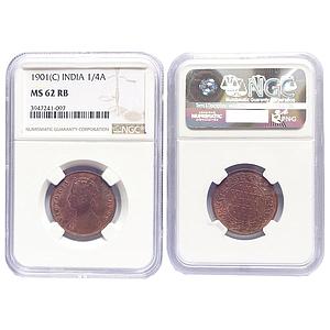 Victoria Queen Copper 1/4 Anna Error Brockage complete lakhi impression