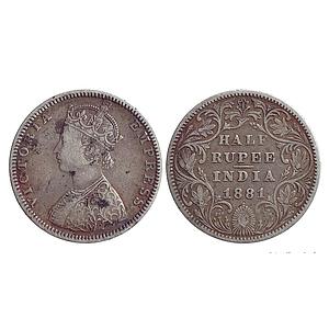 British India Victoria Empress 1881 AD Obv. B2 Rev. II with dot Bombay Mint Silver 1/2 Rupee