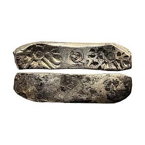 Ancient Punch Marked Coinage from lower Middle Ganga Valley Narhan Hoard Type Usually attributed to Vrijji/Shakya Janapada Silver Double Karshapana