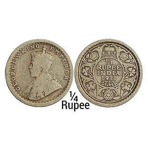 British India George V 1911 AD Calcutta Mint Silver 1/4 Rupee