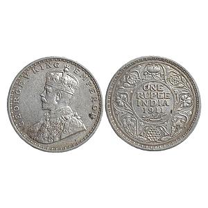 British India George V 1911 AD Bombay Mint Silver Rupee