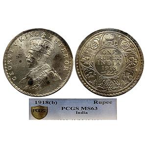 British India George V 1918 AD Bombay Mint Silver Rupee