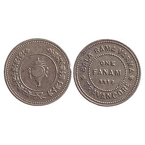 IPS Travancore State Bala Rama Varma II Silver Fanam