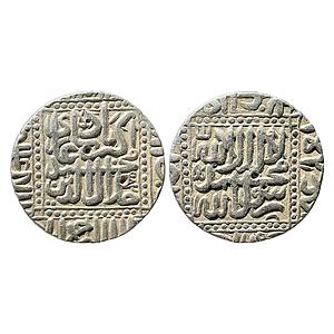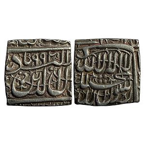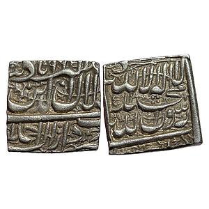 Mughal Akbar Dar ul-Sultanat Ahmedabad Mint Silver Square Rupee