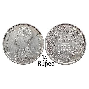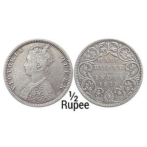 British India Victoria Queen 1875 AD Obv. A Rev. I Calcutta Mint Silver 1/2 Rupee