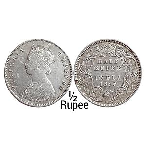 British India Victoria Empress 1886 AD Obv. A Rev. I "C" incuse Calcutta Mint Silver 1/2 Rupee