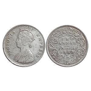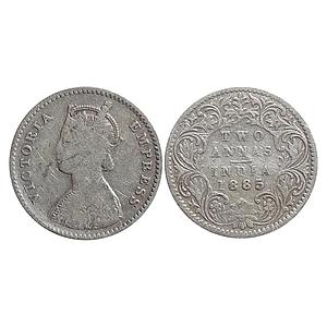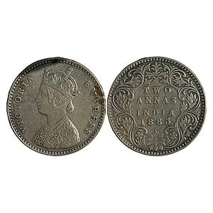 British India Victoria Empress 1885 AD Obv. A Rev. I B raised Bombay Mint Silver 2 Annas