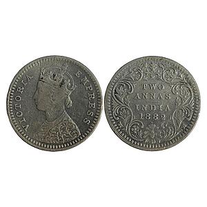 British India Victoria Empress 1883 AD Obv. B Rev. II dot Bombay Mint Silver 2 Annas