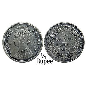 British India Victoria Empress 1884 AD Obv. C Rev. I B raised Bombay Mint Silver 1/4 Rupee