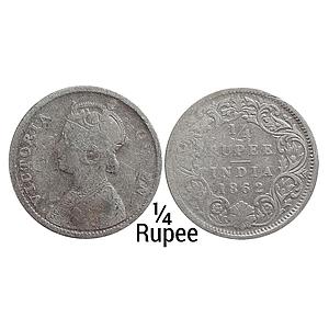 British India Victoria Queen 1862 AD Obv. A Rev. I No mint mark Calcutta Mint Silver 1/4 Rupee