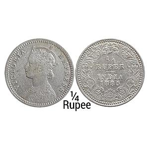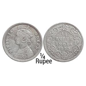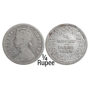 British India Victoria Queen 1875 AD Obv. A Rev. I No mint mark Calcutta Mint Silver 1/4 Rupee