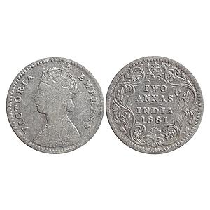 British India Victoria Empress 1887 AD Obv. B Rev. II B incuse Bombay Mint Silver 2 Annas