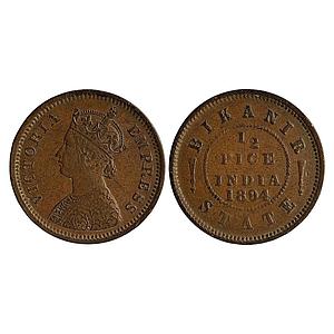 IPS Bikaner State Ganga Singh with the name and portrait of Victoria Copper 1/2 Pice