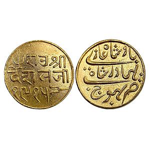 IPS Kutch State Deshalji II with the name of Bahdur Shah II Bhujnagar Mint Gold 25 Kori