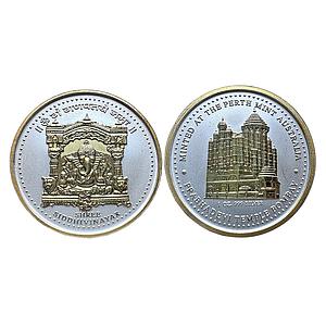 Shree Siddhi Vinayak Minted At Perth Mint Australia Prabhadevi temple Bombay Gold Plated Silver Coin 1 OZ (999)