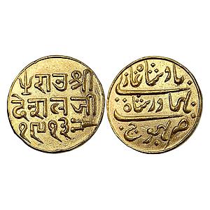 IPS Kutch State Deshalji II with the name of Bahdur Shah II Bhujnagar Mint Gold 25 Kori