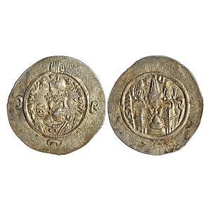 Ancient World Sasanian Dynasty Khusro II Mint AB (Abiverd) Silver Drachm