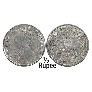 British India Victoria Empress 1899 AD Bombay Mint Obv. A Rev I B incuse Inverted B Silver 1/2 Rupee