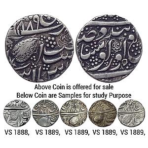IK Sikh Empire Ranjit Singh VS 1889 Unidentified Sikh Mint E NanakShahi Couplet Silver Rupee