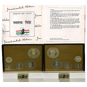 Republic India 1989 AD Proof Set Jawaharlal Nehru Centenary Set of 4 Rupee 1 5 20 & 100