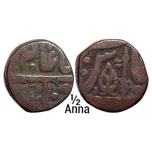 IPS Indore State INO Shah Alam II Copper 1/2 Anna