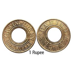 Famine Relief Grain Token 1874 AD Gold Gilt 1 Rupee