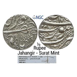 Mughal Jahangir Surat Mint Silver 1/2 Rupee
