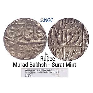 Mughal Murad Bakhsh Surat Mint Silver 1/2 Rupee
