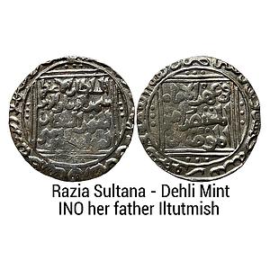 Delhi Sultan Jalalat al-din Radiyya Razia Sultana Dehli Mint In the name of her father Iltutmish Silver Tanka