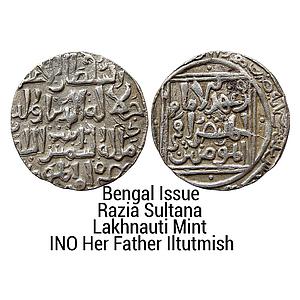 Bengal Sultan Jalalat al-din Radiyya Razia Sultana coins Struck INO her father Iltutmish Lakhnauti Mint Silver Tanka