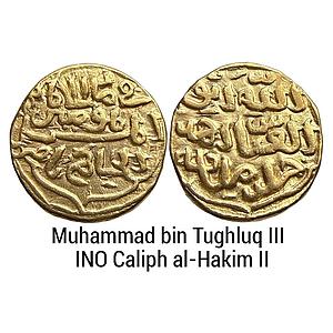 Delhi Sultan Muhammad Bin Tughluq III in the name of the Caliph al-Hakim II Gold Tanka