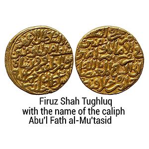 Delhi Sultan Firuz Shah Tughluq with the name of the caliph Abu'l Fath al-Mu'tasid Gold Tanka
