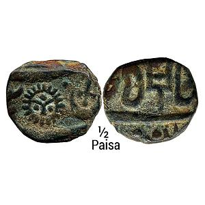 IPS Indore States Ahalyabai Holkar INO Shah Alam II Copper 1/2 Paisa