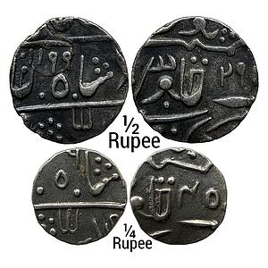 IPS Pratabgarh State Sawant Singh INO Shah Alam II Udaya Singh Devgadh Mint Set of 2 Coins Silver 1/2 Rupee & 1/4 Rupee