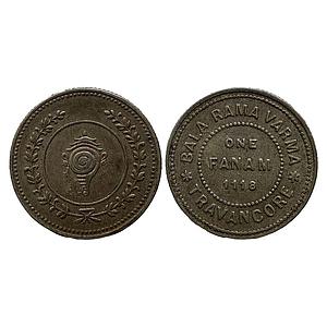 IPS Travancore State Bala Rama Varma II Silver Fanam