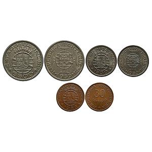 Indo Portuguese Goa Colonial Issue Set of 5 Coins Cupro-Nickel 6 Escudos 3 Escudos Escudo and 60 Centavos Bronze 10 Centavos
