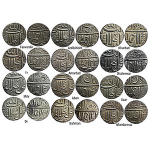 Mughal Akbar Ahmadabad Mint Full 12 Ilahi Months Set Silver Rupee