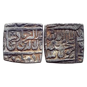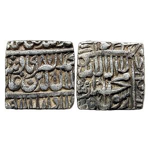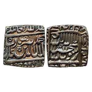 Mughal Akbar Urdu Zafar Qarin Mint Silver Square Rupee