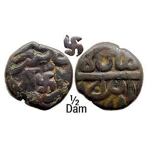 Mughal Akbar style that of Mangarh Mint Copper 1/2 Dam