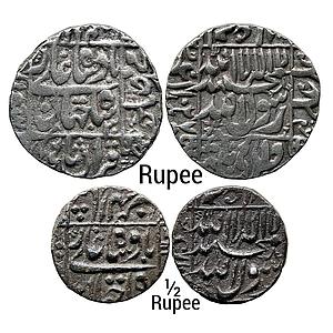Mughal Shah Jahan Surat Mint Set of 2 Coins Silver Rupee & 1/2 Rupee