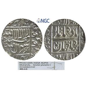 Mughal Shah Jahan Khambayat Mint Silver Rupee