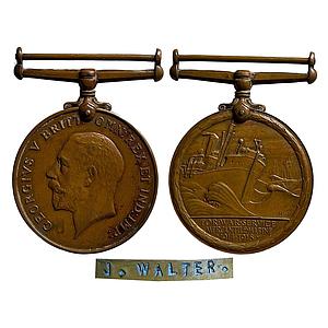 Mercantile Marine War Medal George V awarded to J. Walter Bronze Medal