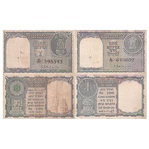 India, Government of India Set of 2 Notes K. G. Ambegaonkar Year - 1950 & 1951 Serial No. F57 598393 Serial No. L16 643602 Watermark - Ashoka Pillar 1 Rupee