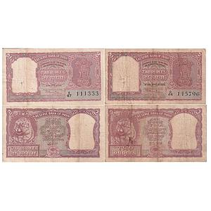 Reserve Bank of India signed by B. Rama Rao 1957 Serial No.: E67 111333 & C44 145796 Set of 2 Notes 2 Rupees