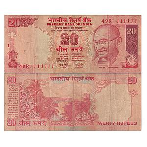 India Reserve Bank of India signed by Y.V. Reddy fancy number note without inset serial no.: 49R 111111 20 Rupees