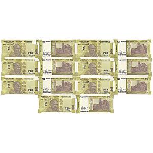 India Reserve Bank of India A group of 7 Notes signed by Shaktikanta Das inset A Error extra paper and an uneven cut in top right corner 20 Rupees