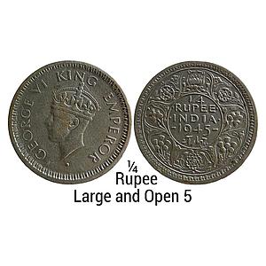 British India George VI 1945 AD Bombay Mint dot Large and Open 5 Half Silver 1/4 Rupee