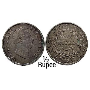 EIC William IV 1835 AD Bombay Mint No initials 20 Berries 10L+10R Silver 1/2 Rupee